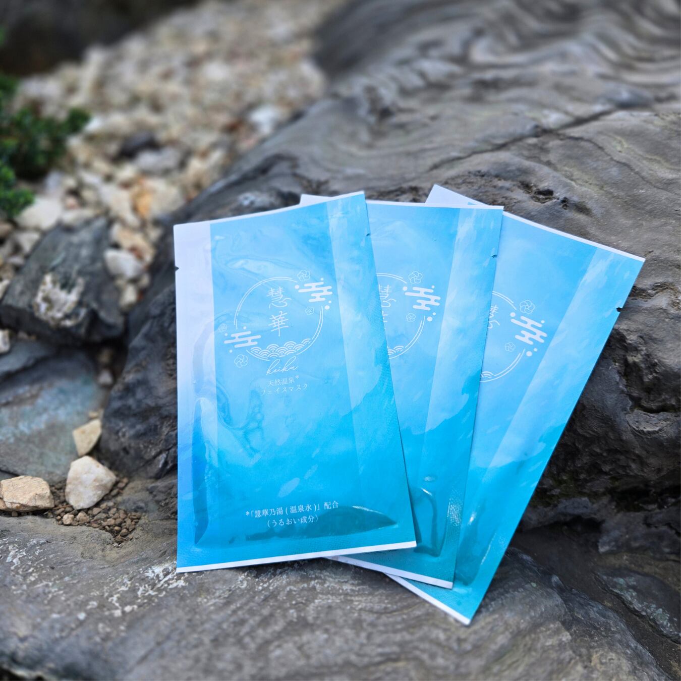 慧華乃湯の天然温泉を配合した、オリジナルフェイスマスクのお得な3枚セットです。